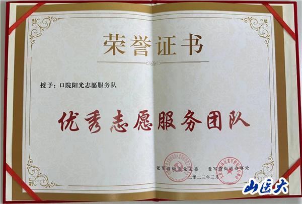 我校口腔医院荣获“优秀服务团队”荣誉称号