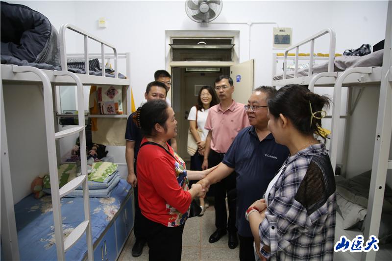 为帮助新生更快融入校园,8月30日下午,学院党委书记张志红、院长王彤,党委副书记蔚钰琼,副院长邱服斌、聂继盛,分团委书记张瑾,在辅导员娄笑的陪同下走访新生宿舍。他们认真检查水电与安全设施,与同学们亲切交谈,从课程学习、科研规划到生活起居一一叮嘱,并鼓励大家主动探索、积极成长,早日融入山医生活。一句句关怀与叮咛,悄然消解了新生的陌生与不安,更筑牢了对学院的归属与认同。